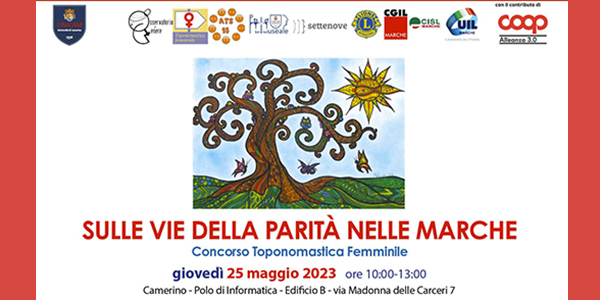 Lo scorso 25 maggio si è tenuta la cerimonia di premiazione della VI edizione del concorso didattico Sulle vie della parità nelle Marche – a.s. 2022/2023 promosso dall’Osservatorio di Genere. A sostenere e aiutare l’OdG numerose realtà del territorio e non: l’Università di Camerino, l’Ambito Territoriale Sociale 15 di Macerata, Settenove, meravigliosa e preziosa casa editrice di Cagli (PU) da sempre impegnata nell’educazione alle differenze e nella decostruzione degli stereotipi, Lions Club Macerata Host, CGIL Marche, CISL Marche e UIL Marche e COOP Alleanza 3.0, e infine Toponomastica femminile, associazione nell’ambito del cui X concorso nazionale Sulle vie della parità di situa l’edizione regionale del concorso.