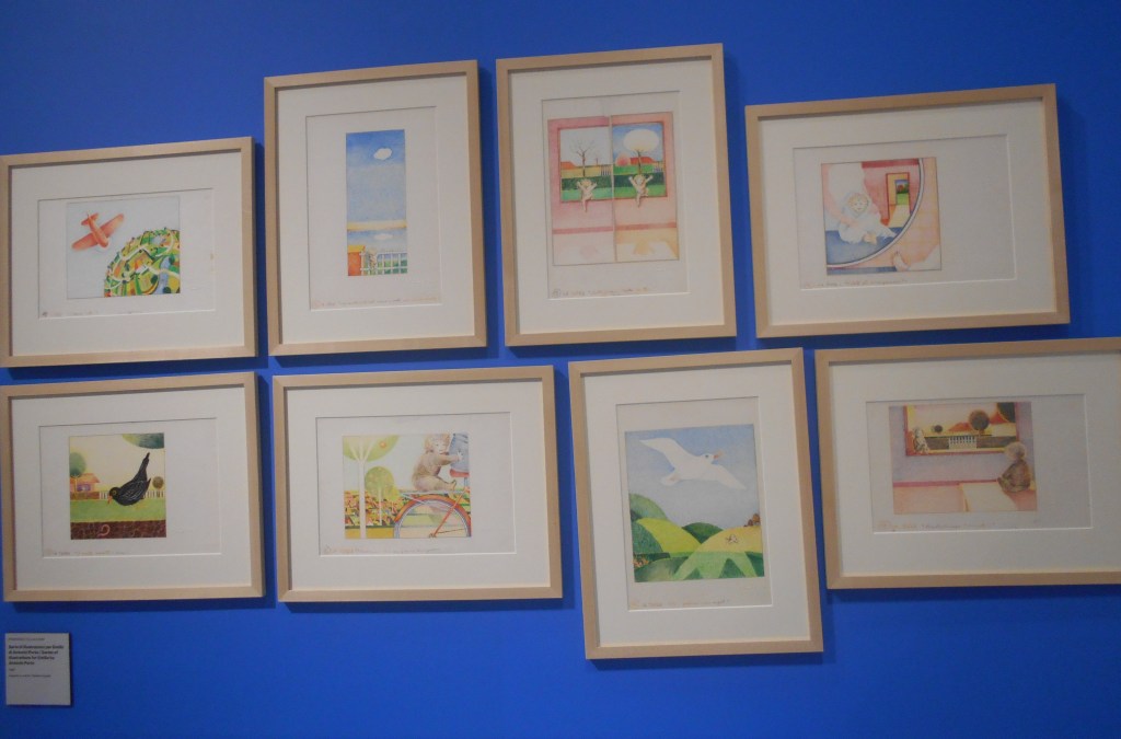 Una intera parete da gustarsi con tutta calma e puro divertimento è occupata dagli animali fantastici, creature dai nomi improbabili e dall’aspetto curioso, unico, fuori regola che ovviamente esistono solo nel mondo dell’immaginazione e fanno cose mirabolanti. Di grande finezza le illustrazioni realizzate per altri, come quelle per il volume Emilio di Antonio Porta, o più giocose e coloratissime quelle per varie famose opere di Rodari, fra cui La torta in cielo e Favole al telefono.