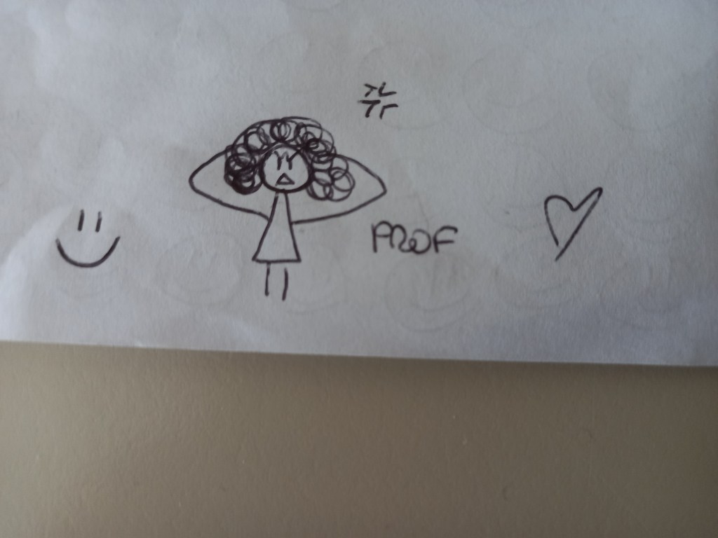 E poi ci sono le ragazze. Penso soprattutto a loro, guardando il disegnino della “prof sclerata” che qualche mia alunna ha tracciato sul foglio degli appunti di matematica. Lo sarete anche voi, care ragazze, spettinate e sconvolte dalla fatica quando dovrete fare le mamme, le mogli, le lavoratrici, le amiche, le domestiche, le sorelle, le figlie, le infermiere domiciliari ecc. nella stessa vita, notti incluse. Allora vi servirà aver avuto insegnanti, maschi e femmine, che abbiano saputo lasciarlo davvero un segno. E scoprirete in voi mille qualità, mille capacità, l’arte del funambolismo perfetto, che vi permetterà di tenere in equilibrio tutti i pezzi dell’essere donna oggi.