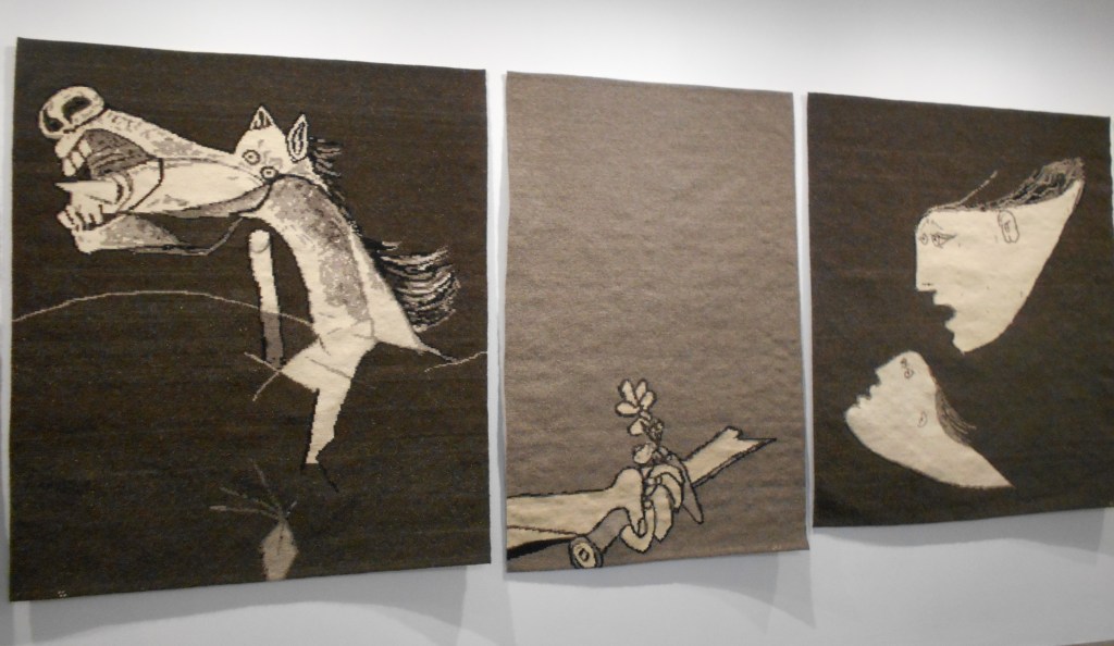 Ne abbiamo parlato anche a proposito della replica a grandezza naturale di alcuni dettagli di Guernica di Picasso, in occasione della mostra Genesi di un capolavoro al Museo Man di Nuoro (Vv n.202); le mani abili delle tessitrici della Barbagia realizzarono con lana di pecora sarda e telai verticali i soggetti più significativi del capolavoro del Maestro, seguendo un progetto ambizioso dello Studio Pratha con la direttrice creativa Graziella Carta e la designer Laura Lai.