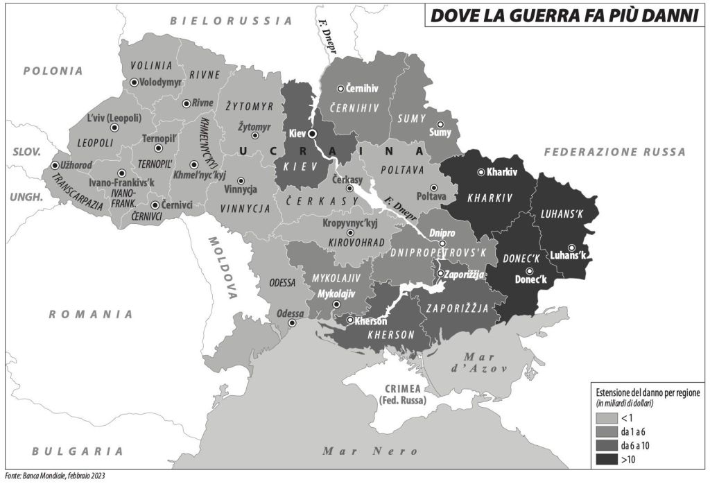 In questa parte del volume di giugno molte sono le cosiddette “voci di dentro”, le conversazioni e gli articoli scritti da ucraini, quasi tutti sulle previsioni di ciò che potrebbe accadere alla fine della guerra e sull’idoneità di Zelens’kyj a costruire la democrazia, di cui non è mai stato un convinto assertore, essendo piuttosto un populista, anche se è sicuramente il meno a destra di quelli che potrebbero sostituirlo, come i membri di Svoboda o Azov. L’articolo di Oxana Pachlovska, Grazie Italia ma è ora di conoscerci meglio, va letto per capire come il popolo ucraino ha interpretato la storia dei nostri rapporti con la loro patria nel tempo. Spiazza il giudizio negativo persino su Papa Francesco. Ma la geopolitica ci insegna che tenere conto del punto di vista degli altri popoli e Stati può soltanto arricchirci. L’aspetto economico dei danni e della ricostruzione è molto bene descritto da Fabrizio Maronta, nel suo La guerra presenta il conto, in cui il collaboratore di Limes denuncia le sue perplessità sul primo schema di ricostruzione reso pubblico nel settembre 2022 dal German Marshall Fund statunitense, con l’evocativo titolo: Designing Ukraine’s Recovery in the Spirit of the Marshall Plan. Da leggere in questo approfondimento, accurato in ogni sua parte, il pezzo finale, che riguarda l’ingresso dell’Ucraina nella Ue e la vicenda del grano destinato all’Africa, rivelatrice della nostra grande ipocrisia. Scrive Maronta: «Il copione si ripete: delle circa 25 milioni di tonnellate di granaglie esportate nei primi mesi del 2023 dall’Ucraina in base all’ accordo (appositamente rinnovato), meno di mezzo milione ha preso la via di Etiopia, Yemen, Gibuti, Somalia o Afghanistan. Il grosso se l’è accaparrato l’Europa. Oltre allo scandalo morale e all’autolesionismo strategico -un’Europa che concorre ad affamare l’Africa con spregiudicate pratiche commerciali difficilmente può poi chiederle di riprendersi i migranti «economici», meno ancora di evitare che partano –la circostanza mette a nudo il cuore della questione. L’Ucraina era –e auspicabilmente tornerà– una potenza agricola con terre tra le più fertili al mondo. Una volta nella Ue, sarebbe anche il paese più povero e tra i più popolosi (ipotizzando un rientro dei rifugiati che, al netto delle vittime per ora non quantificate, riporti il paese vicino ai 43 milioni di abitanti anteguerra). La Pac (Politica agricola comune) resta il cuore del bilancio europeo, assorbendone da sola circa un terzo. Una Ue che lucra sulle commodities ucraine in piena emergenza e che contempla un parziale, ma clamoroso uso degli asset russi per attenuare il conto della ricostruzione, sborserebbe in permanenza i miliardi necessari a sostenere sine die l’agricoltura di Kiev?».