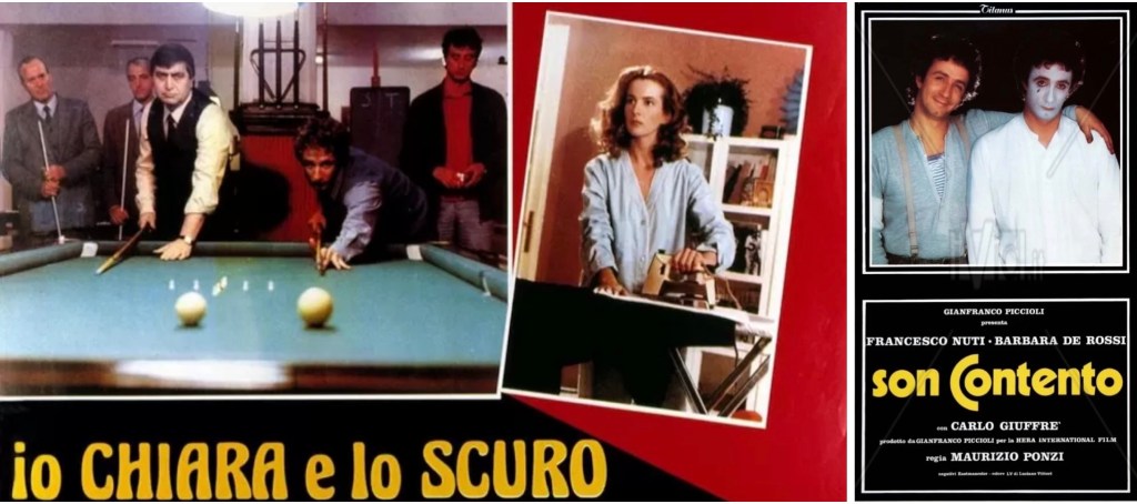 Nuti si aggiudica il David di Donatello e il Nastro d’argento per il ruolo di protagonista della prima pellicola: il suo alter ego Francesco Piccioli; ottiene i due premi anche la partner Giuliana De Sio. Avranno entrambi pure il Globo d’oro e la Grolla d’oro. In questo film centrale è il biliardo giocato all’italiana, tema ripreso anni dopo in Casablanca Casablanca (1985) e Il signor Quindicipalle (1998), dei quali è regista. Per chi non lo ricordasse, lo “Scuro” citato nel titolo è un vero giocatore professionista, Marcello Lotti, con cui nasce una rivalità sportiva. In Son contento, invece, Nuti, al fianco di Barbara De Rossi e Carlo Giuffrè, è un cabarettista che, dopo una crisi amorosa e professionale, riprende la via del successo, pur deludendo la compagna, consapevole di essere solo una comparsa nella sua vita di artista. Grandi consensi ebbero i film seguenti: Tutta colpa del Paradiso, Stregati, Caruso Pascoski (di padre polacco), Willy Signori e vengo da lontano, Donne con le gonne, mentre quelle degli anni 1994-2001 persero smalto, il pubblico non manifestò altrettanta simpatia e una produzione fallimentare (OcchioPinocchio) causò difficoltà economiche che lo portarono a una profonda sofferenza. Ci piace allora lasciarlo all’apice della carriera, senza ripercorrere il triste calvario successivo; ci piace sentirlo ripetere: «Dammi un bacino!», nella divertente scena con il carabiniere, e «Madonna che silenzio c’è stasera!»; ci piace ascoltarlo cantare e salutarlo con un sorriso.