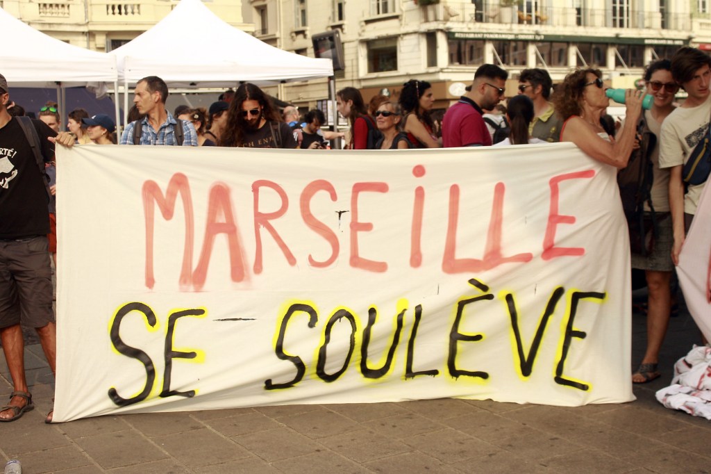 A partire dal 29 giugno tutte le grandi città francesi hanno assistito a manifestazioni e scontri al limite della guerra civile. Vista la sua composizione multietnica, Marsiglia è stata uno degli epicentri della rivolta. Rispetto ai cortei sindacali, cui partecipano soprattutto militanti con anni di studio alle spalle, cultura politica e coscienza di classe, le rivolte di fine giugno e inizio luglio hanno visto decine di migliaia di giovanissimi maghrebini riempire le strade per sfogare non solo la rabbia per l’ennesimo omicidio ma anche decenni di frustrazione per le condizioni in cui vivono: considerano normale il rischio di essere uccisi ancora adolescenti, non hanno modo di studiare, non sanno nemmeno quando è il caso di coprirsi il volto in manifestazione ma conoscono bene l’odore dei gas lacrimogeni o il rumore delle flashball (granate assordanti, considerate armi da guerra, che possono provocare ferite anche molto gravi), sanno che se escono a fare la spesa senza documenti possono passare giorni in questura e tornare a casa pieni di lividi. Non è poi così tanto sorprendente che queste persone, da sempre ignorate e insultate (definite «la feccia della società» da Sarkozy e «le persone che non valgono niente» da Macron), sfruttate sul lavoro, respinte alle frontiere o trattate da straniere anche se nate qui, inquiline di quartieri degradati, arrivino all’esplosione. Dall’altro lato, la Police nationale e la Gendarmerie aggredivano anche le manifestazioni autorizzate e pacifiche, lanciavano lacrimogeni sulla folla senza alcuna distinzione, spaccavano teste e ossa a manganellate, sparavano proiettili di gomma e oggetti metallici. Sono stati mobilitati carri armati e mezzi blindati delle unità antiterrorismo.