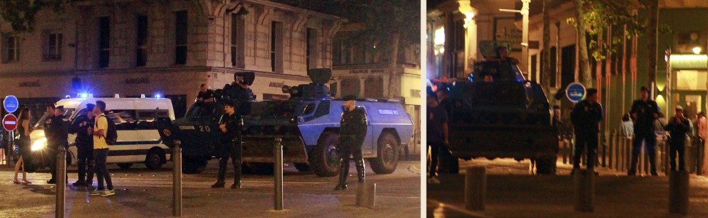 La sera del 2 luglio, al vecchio porto di Marsiglia, vedevo carri armati e mezzi blindati avanzare contro la folla, vedevo agenti a volto coperto sparare, vedevo bambini e adolescenti arabi in preda all’esasperazione sfasciare e incendiare qualunque cosa capitasse a portata di mano senza che nessuno li fermasse, vedevo persone pacifiche ferite e insanguinate che piangevano sangue a causa di “qualcosa” sparato sugli occhi, vedevo agenti in borghese puntare armi sui giornalisti, fino alla notizia di un morto… Ed erano mesi che provavo disgusto per i modi autoritari del governo, per le leggi non votate e i dibattiti parlamentari vietati. Quella sera, davanti a tutto ciò, mi sono chiesto: «davvero qualcuno ha votato questo in quanto costituirebbe l’alternativa all’estrema destra?».