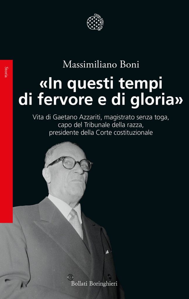 Massimiliano Boni, consigliere della Corte Costituzionale, con questa ricerca dà un significativo contributo a questo filone storiografico. Con un esame minuzioso, accurato, logicamente inappuntabile, di numerosissimi documenti, molti dei quali finora inediti, l’autore segue la vita e il percorso professionale di Gaetano Azzariti, con opportuni riferimenti alla storia politica d’Italia. Non spaventatevi della mole (circa trecento pagine): lo stile scorrevole, elegante, mai moralistico, la coerenza della struttura e una giusta dose di ironia ne fanno un libro molto gradevole da leggere. Trovo inoltre godibilissime le pagine in cui tratteggia vivacemente il quadro delle trasformazioni urbanistiche e sociali di Napoli e Roma e del clima culturale che vi si respira.
