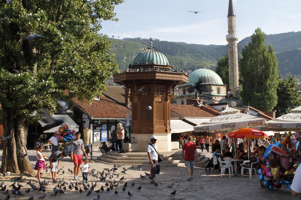 Accanto alle moschee si trovano la Cattedrale ortodossa – contenente una pregiata collezione di icone – e la Cattedrale del Sacro cuore, i maggiori edifici cristiani, mentre la comunità ebrea sefardita e quella ashkenazita hanno ognuna la propria sinagoga. Pochi posti al mondo vantano una tale concentrazione religiosa secolare; oltre alle attività spirituali qui si anima anche la movida, con gruppi di giovani e giovanissime/i che la frequentano regolarmente. Le numerose fontane che abbelliscono le vie sono alimentate dal fiume Miljacka, che divide in due Sarajevo. Quella principale è la fontana di Sebilij, nella piazza centrale di Baščaršija, attaccata alla moschea di Gazi Husrev-beg: leggenda vuole che chi si abbeveri da essa tornerà prima o poi a Sarajevo, fatto che l’ha resa meta di moltissime e moltissimi turisti.