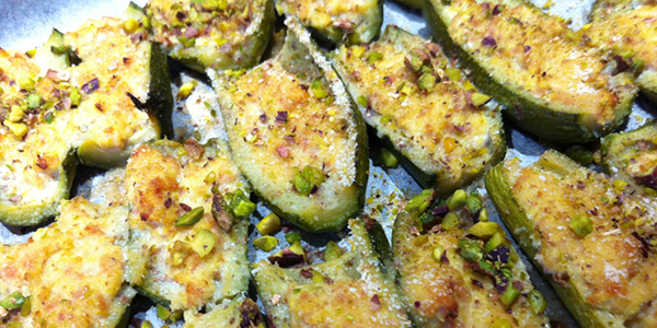 Con questo composto riempite le barchette di zucchine, e terminate spolverandole con i pistacchi sbriciolati grossolanamente.