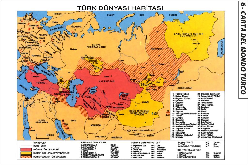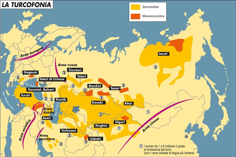 Oltre a una grande profondità strategica nelle zone del mondo in cui si esercita la sua influenza, la Turchia influenza il cosiddetto mondo turco, intendendosi con questa espressione quella parte di Asia Centrale collegata per storia, lingua e cultura ad Ankara. Il mondo turco comprende, oltre alla Repubblica di Turchia, le Repubbliche ex sovietiche dell’Asia centrale e occidentale e parti della Cina. Non c’è quasi area dell’Eurasia in cui non ci siano popolazioni che parlano turco e qualche studioso ritiene che la stessa lingua latina discenda dal prototurco.