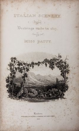 Elizabeth Frances Batty (1791-1875), figlia del medico e artista dilettante Robert Batty, divenne nota come acquerellista. Uno dei figli nati dal suo matrimonio con Philip Martineau, Robert, si associò ai pittori preraffaelliti. Il suo Italian scenery. From drawings made in 1817, pubblicato nel 1820 e dedicato al padre, è arricchito da una sessantina di disegni. Le incisioni contenute nel libro sono tratte dai disegni originali di Elizabeth e raffigurano vedute di città e località italiane. Sono dipinti a penna, pennello e inchiostri seppia, e registrano il viaggio che lei e suo padre, un illustre medico, fecero in Italia nel 1817. La qualità del lavoro della ventiseienne Miss Batty suggerisce non solo l’uso esperto di una camera oscura, ma anche la padronanza nella tecnica degli acquarelli, frutto di lezioni apprese da maestri di pittura, soprattutto dal pittore e insegnante di acquerelli, John Glover, pioniere della tecnica dello split brush, con la quale ravvivava e dava atmosfera alle sue vedute. Inoltre sono stati senza dubbio disegnati pensando all’incisore, con tutte le informazioni di cui avrebbe avuto bisogno. Nonostante la qualità di questi disegni, non è stata identificata nessun’altra opera di Elizabeth Batty.