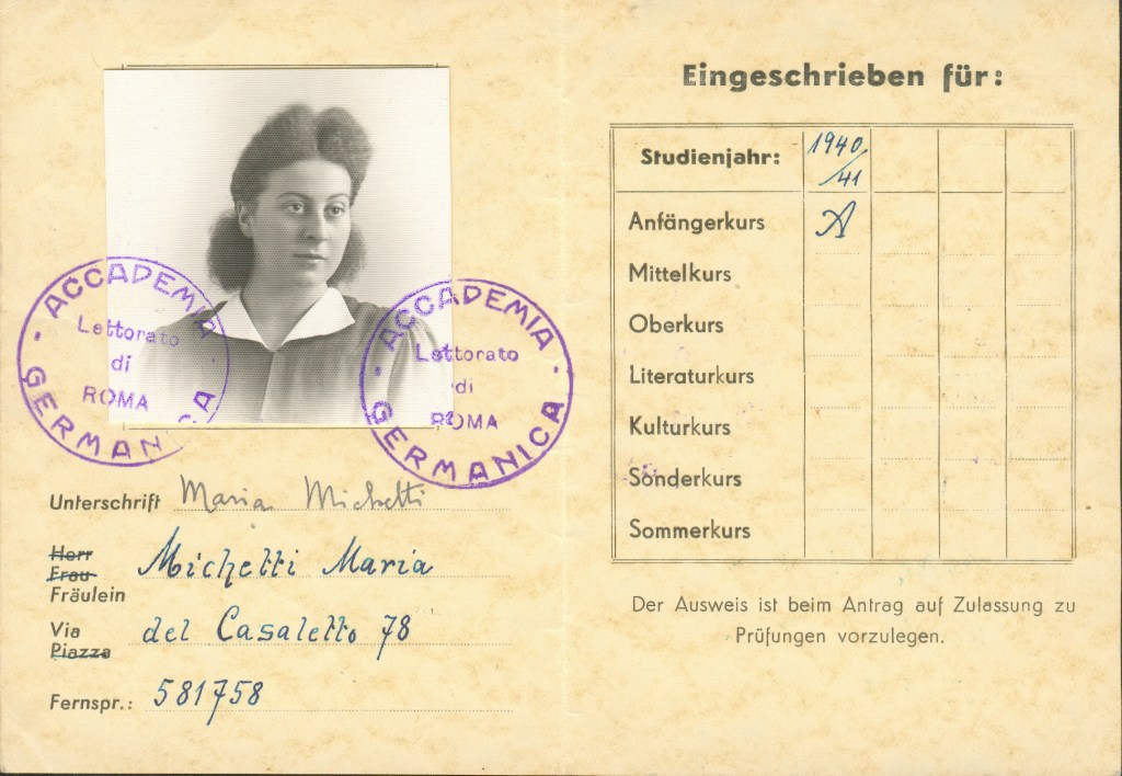 Dopo la scuola si iscrive alla Facoltà di Lettere della Sapienza, animata in quegli anni da un gruppo di giovani antifascisti/e che vedono nel professor Natalino Sapegno una figura di riferimento morale e politico; entra così in contatto con alcuni giovani comunisti e dal 1942 comincia a lavorare nelle organizzazioni antifasciste, raccogliendo fondi e diffondendo l’Unità clandestina: «Mi fanno leggere l’appello unitario emesso a Parigi, in cui comunisti e socialisti e altre forze si rivolgevano agli italiani perché agissero contro il fascismo, cominciassero a fare qualcosa contro il fascismo. Questo fare qualcosa mi piacque e dissi che ero disponibile […]». L’adesione alla Resistenza è la conclusione di un percorso tracciato che Maria accetta consapevolmente ma con un punto fermo: il suo profondo rispetto per la vita umana non le consente di imbracciare armi, le sue azioni non saranno mai azioni di fuoco. Dopo il 25 luglio del 1943 l’impegno si fa sempre più pressante. Maria, che è entrata nella struttura clandestina del PCI, si occupa di logistica e di collegamento tra il gruppo politico centrale e il territorio della città. Tutte le mattine porta notizie, ordini, informazioni, lo fa con qualunque mezzo, quando può in bicicletta, qualche volta in autobus ma per lo più a piedi, attraversando Roma in lungo e in largo: di fatto svolge il lavoro di preparazione per le azioni militari.