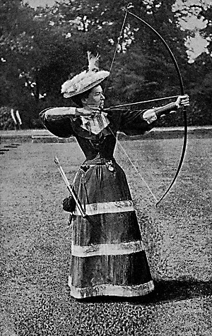 Nel periodo tra la fine dell’Ottocento e l’inizio del Novecento l’arciera che più si distinse è stata Alice Legh, nominata “la più grande arciera britannica di tutti i tempi”. Durante la sua carriera vinse ventitré volte il Campionato nazionale femminile, ma nel 1908 rifiutò di partecipare alle Olimpiadi di Londra per difendere il proprio titolo nazionale e per competere nel campionato britannico, ritenuto più prestigioso rispetto ai Giochi. Quindi venne sostituita dall’atleta Charlotte “Lottie” Dod, citata dal Guinness dei primati come la sportiva più versatile di sempre. Oltre al tiro con l’arco si dedicò infatti all’hockey su prato, al golf e al tennis (vincendo ben cinque volte il Wimbledon). In quella gara fu battuta dalla sua avversaria di 53 anni Sybill Newall, che divenne la vincitrice di una medaglia d’oro olimpica più anziana dell’era moderna.
