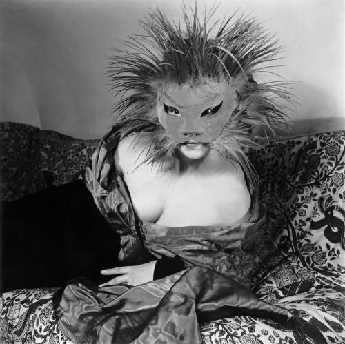 Nel dopoguerra la ritroviamo in tante foto in cui l’artista gioca con i travestimenti, assumendo pose sensuali, da femme fatale. Per Fini il travestimento non è una stravaganza, bensì è un’arte, un atto di creatività e una rappresentazione del sé su un piano fuori dallo spazio e dal tempo.