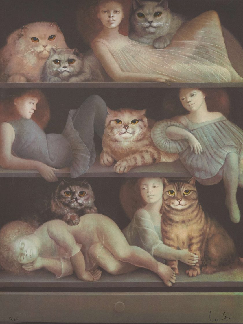 Per tutta la vita dipinse in scene da sogno o da incubo figure metà donna, metà felino, nelle quali si riconosceva, gatti, sfingi, donne alate, dame medievali e amazzoni. Forte era la sua passione per i gatti: l’appartamento parigino che condivideva con Lepri e Jeleński era popolato da numerosi gatti e una gatta entrerà nell’asse patrimoniale al momento della scomparsa dell’artista.