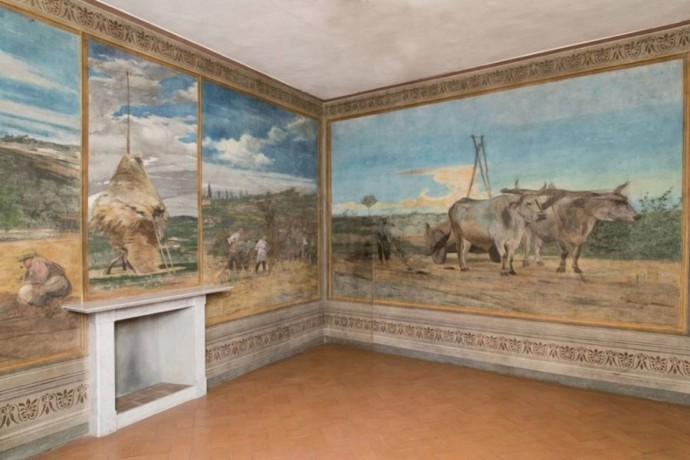 Al primo piano, in una sala appositamente ricostruita, è esposto il ciclo di pitture murali di ispirazione agreste provenienti da Villa Falconer e realizzate nel 1867 dal famoso pittore ferrarese Giovanni Boldini (1842-1931). È grazie alla tenace ricerca di una donna se oggi quelle tempere possono essere ancora ammirate in tutta la loro bellezza. La storia è avvincente e degna di un romanzo.