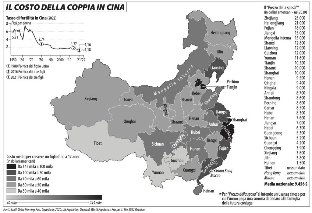 Dalla prima parte, Incubi e sogni di Pechino, segnaliamo Generazione Xi, di Giorgio Cuscito, che ci dà un quadro che sarà per molti/e inaspettato di questo Paese. La disoccupazione e il malessere giovanile sono in crescita, il rallentamento dell’economia persiste, diminuiscono matrimoni e nascite, aumenta il problema dell’obesità. Abituati dalla narrazione occidentale a pensare una Cina sovrappopolata, apprendiamo che invece è in crisi demografica e che questo rappresenta un ostacolo al “risorgimento della nazione”, « percorso che sul piano narrativo prevede il definitivo superamento del «secolo delle umiliazioni» subite per mano di europei, russi e giapponesi tra la prima guerra dell’oppio (1839) e la fondazione della Repubblica Popolare nel 1949. Risorgimento che dovrebbe completarsi entro il 2049, con la restituzione alla Cina del ruolo di centro del mondo perso durante la dinastia Qing» e la riunificazione con Taiwan. La necessità di fare più figli, sostiene (amaramente per chi scrive) il consigliere di Limes, servirebbe anche in caso di guerra con l’America per Taiwan.