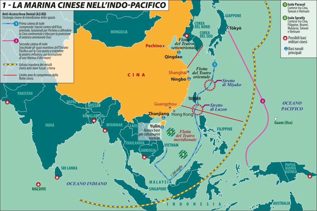 Quanto alla politica di trasformazione della Cina in potenza marittima, se ne occupa l’approfondimento di You Ji, che ricorda le quattro revisioni della Marina cinese: dalle imbarcazioni costiere degli anni Cinquanta si è passati oggi a gruppi da battaglia di portaerei per spedizioni oceaniche. «Nel 2021, con 335 navi all’attivo, quella cinese è diventata la Marina più grande del mondo per numero di vascelli da guerra, anche se la distanza rispetto agli Stati Uniti in termini di capacità belliche resta notevole. La Marina cinese è tuttora in crescita e probabilmente manterrà questo ritmo anche in futuro: secondo il Pentagono, entro il 2030 le navi saranno 460 e ciò ridurrà ulteriormente il divario con gli Stati Uniti». Del resto, fin dal 1953, lo aveva detto anche il Grande Timoniere: «Siccome la maggior parte delle invasioni straniere, sin dal 1840, sono venute dal mare, la Marina cinese dev’essere una forza capace non solo di proteggere le coste della Cina, ma anche di contrastare le potenze marittime ostili negli oceani».