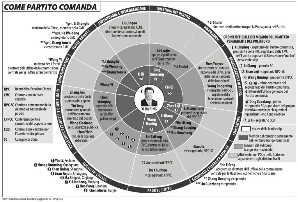 L’approfondimento più interessante del volume riguarda però la figura di Xi-Jinping, cui sono dedicati due articoli. Da Il nuovo Mao gioca col fuoco, di Willy Lam riportiamo alcuni stralci: Xi «è stato spesso deriso per la sua scarsa istruzione, avendo studiato solo fino alle scuole medie. Tuttavia, è senza dubbio un maestro dell’intrigo politico: quella sottile arte che consiste nel costruirsi una solida base di consenso e nell’accantonare, se non cooptare, nemici da fazioni avverse […] Il Politburo di 24 membri e il Comitato permanente dello stesso, che è composto da 7 persone e rappresenta il sancta sanctorum del potere cinese, sono entrambi dominati da alleati, amici ed ex sottoposti del settantenne leader supremo […] Gli emendamenti allo Statuto del Partito nel 2018 e alla Costituzione nel 2022 hanno consacrato Xi come fulcro del Partito a vita. Le sue idee su diversi aspetti del governo, condensate in «Il pensiero di Xi Jinping sul socialismo con caratteristiche cinesi per una nuova èra», sono state inscritte in Costituzione nel 2022 quali «luce guida» per il Partito e la nazione […] Numerose decisioni controverse in materia economica riflettono le personali idiosincrasie di Xi», come la scelta di castigare i conglomerati dell’information technology (It) ritenuti insubordinati, tra cui Alibaba, Tencent e Didi Chuxing o il divieto, nel 2020, di quotare Ant Group, controllata chiave di Alibaba, alla Borsa di Shanghai. Nel 2021 e nel 2022 Xi ha sostenuto una campagna parapolitica contro gli imprenditori «avidi» accusati di violare le norme antitrust e di fomentare una yeman zengzhang (crescita barbarica).» Per non parlare della controversa politica della tolleranza zero ai tempi del Covid-19.