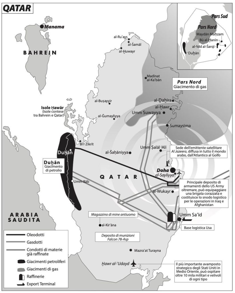 Il ruolo pieno di contraddizioni del Qatar nel conflitto mediorientale è messo bene in evidenza nella seconda parte del volume. Il Paese ha il più alto pil pro capite al mondo grazie agli enormi giacimenti di gas, gli aumenti del prezzo degli ultimi anni lo hanno reso ancora più ricco, mentre i suoi concorrenti diretti, Russia e Iran, sono da tempo tempestati di sanzioni. Durante il conflitto afgano il regime talebano risiedeva a Doha, molti capi di Ḥamas vi hanno trovato rifugio. Con sapiente equilibrismo il Qatar ospita sul suo territorio il quartier generale locale dello United States Central Command (Centcom), importantissimo per la presenza americana in Medio Oriente. Per il rilascio di ostaggi e prigioniere/i palestinesi la mediazione qatarina si è rivelata fondamentale, grazie ai suoi buoni rapporti con Israele, con gli Usa e con il popolo palestinese, ospitato in gran numero sul proprio territorio ai tempi della Nakba o esodo forzato del popolo palestinese del 1947-48. Nei fori internazionali il Qatar si fa portavoce della causa palestinese, spingendo per la costituzione di un vero e proprio Stato con capitale Gerusalemme Est.