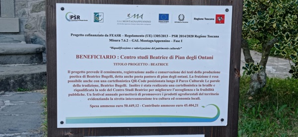 Appena arrivata nel paese mi rendo conto che tutto rimanda a una certa “Beatrice poeta pastora” e subito qualcosa si muove nella mia memoria. Il nome non mi è nuovo, ma dove lo avevo letto? Perché mi suona familiare? Ed ecco che quello che doveva essere semplicemente un tempo di riposo diventa un cammino di ricerca, animato dalla curiosità di saperne di più su questa donna di cui ancora si respira, tra le strade del paese, la presenza, la vitalità, l’attualità. E non soltanto perché le è stata intitolata la strada principale, c’è un’epigrafe funeraria, è stato fondato un centro culturale in suo nome, è stata creata una passeggiata poetica e un parco culturale dove, su appositi massi levigati, sono stati incisi i suoi versi, ma soprattutto perché Beatrice, la sua storia, le sue improvvisazioni, la sua essenza è ancora estremamente “viva” nella memoria della gente del posto.