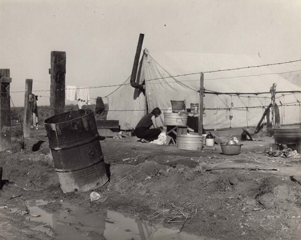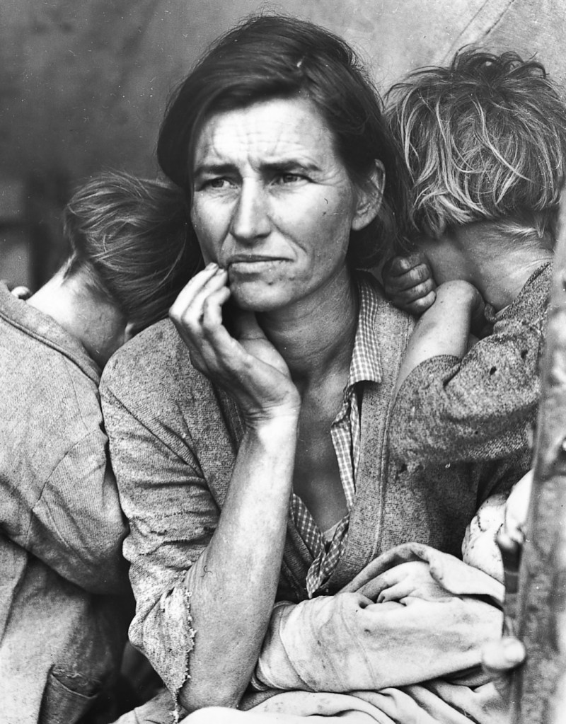 Dorothea Lange (1895-1965) è con ogni probabilità la più famosa documentarista statunitense del secolo scorso. Raggiunge la celebrità documentando la Grande depressione del 1929 e i suoi effetti sulle famiglie, foto che vanno a confluire in An American Exodus, A Record of Human Erosion; armata di macchina fotografica Graflex 4×5, su una Ford modello 40 percorre tutta la California, dove ritrae le condizioni di vita della gente migrante, portando il suo stato miserevole all’attenzione dell’opinione pubblica americana. Nel 1942 documenta invece la deportazione della popolazione nippo-americana nei campi di concentramento. Alla fine della guerra realizza reportage per la rivista Life, per poi iniziare a viaggiare in America, Medio Oriente e Asia meridionale continuando a documentare la vita delle persone comuni.