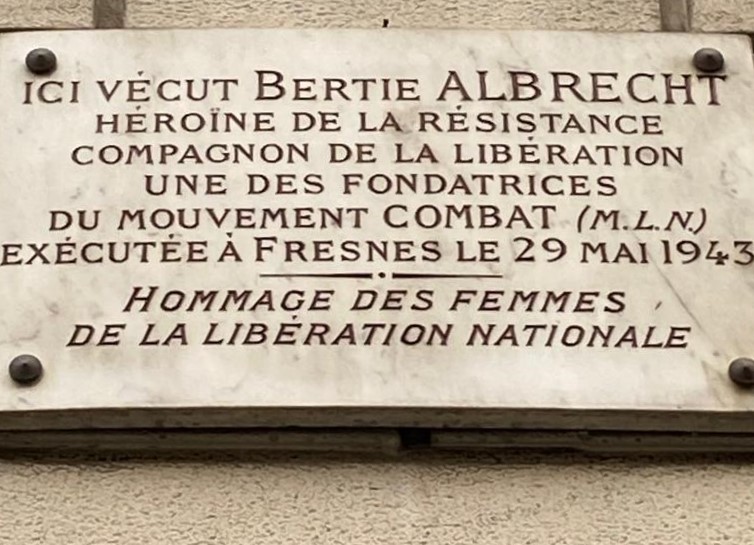 Un’altra targa affissa su un prospetto di Rue de L’Università indica la casa in cui visse Bertie Albrecht a cui comunque è dedicato anche un viale nell’8° arrondissement.