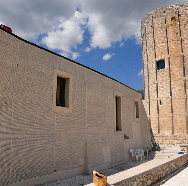 Nel piccolo borgo di Aielli, nella piana del Fucino, nel cuore della Marsica, il romanzo di Silone è stato trascritto nel 2018 su un muro di circa 100 metri quadrati, appartenente a un edificio pubblico nei pressi della Torre medievale, nel punto più alto dell’antico borgo. L’artista è Andrea Parente, in arte Alleg, originario di Tagliacozzo, che vi si è dedicato per circa 10 ore al giorno, coadiuvato da alcuni collaboratori e anche da passanti occasionali. L’anno successivo, nel 2019, l’amministrazione comunale ha realizzato il progetto di trascrizione della Costituzione italiana su un’altra grande parete di quaranta metri quadrati. La bellezza a servizio dell’educazione alla cittadinanza consapevole e responsabile.