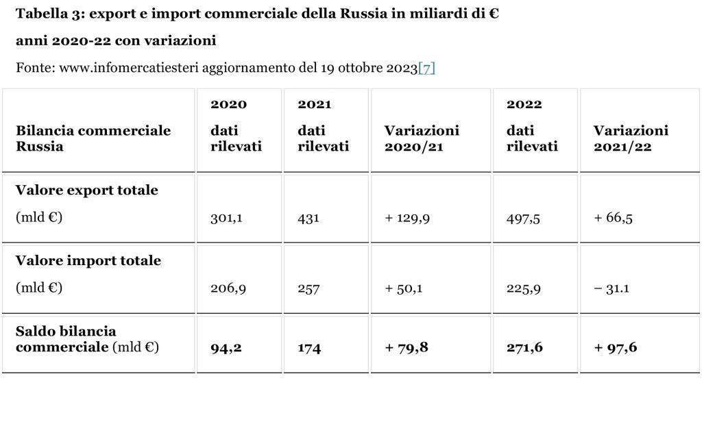 E amaramente conclude: «…ignorando l’Outlook di ottobre del Fmi che dava la Russia in recupero dal -8,5% di aprile al – 3,4% di quel mese e i dati Eurostat sulla bilancia commerciale Ue in pesante passivo (tab. 2), (i governi europei n.d.r.) hanno scelleratamente continuato, per servilismo verso Washington, sulla stessa strada […] finendo in tal modo per creare le condizioni per il disastro economico-commerciale per l’anno 2022 che abbiamo esposto e per il 2023 che analizzeremo in seguito».