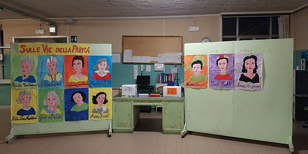 Sulle vie della parità è il concorso indetto da Toponomastica femminile rivolto alle scuole di ogni ordine e grado, nonché agli atenei e agli enti d’iformazione, con l’obiettivo di dare maggiore visibilità alle donne negli spazi pubblici, diffondere l’uso di un linguaggio non sessista, e di promuovere percorsi educativi e didattici atti a valorizzare il ruolo delle donne. È diviso in tre sezioni: la A, Interpretazioni, è dedicata a performance artistiche, recitative o musicali, di opere a firma femminile; la B, Percorsi, è dedicata alla ricerca pluridisciplinare delle donne locali ed esterne attraverso la creazione di itinerari di genere sul territorio e di percorsi che approfondiscono la loro storia avvalendosi di una gran varietà di fonti; infine la C, Narrazioni, è dedicata alla scrittura creativa in collaborazione col premio Italo Calvino ed è riservata a studenti universitari/e, e tratta di scrivere un racconto a partire da 4 incipit forniti dal bando. Il progetto del Paribeni di Mentana è impegnato nella sezione B del concorso, Percorsi, ed è la fine di un processo iniziato con la lettura di due testi, Cattive ragazze di Assia Petricelli e Sergio Riccardi, e Pioniere. Ledonne che hanno fatto l’Europa di Pina Caporaso, Giulia Mirandola e Michela Nanut, e che ha incluso anche degli incontri con le autrici.