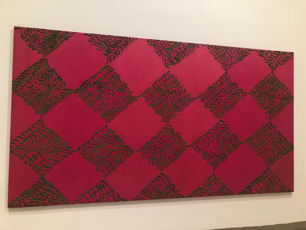 La lancetta dell’imponente orologio di cui la rotonda del Palazzo delle Esposizioni è diventato il simbolo e il contenitore, scandisce i tempi e segna il passaggio alla fase di produzione artistica successiva: siamo negli anni Sessanta e il colore torna a dominare le opere di Accardi. Connubio perfetto tra l’arte dalle forti cromie della fine degli anni Quaranta e quella di sperimentazione del segno degli anni Cinquanta, le opere che vanno dal 1963 al 1966 tornano a essere dominate dal colore. La tela si tinge di sfondi monocromatici sui cui risaltano i segni, ora più sottili e meno intricati, disposti per ripetizioni così da formare alfabeti immaginari (volutamente incomprensibili) e dare ampio respiro al colore sottostante.