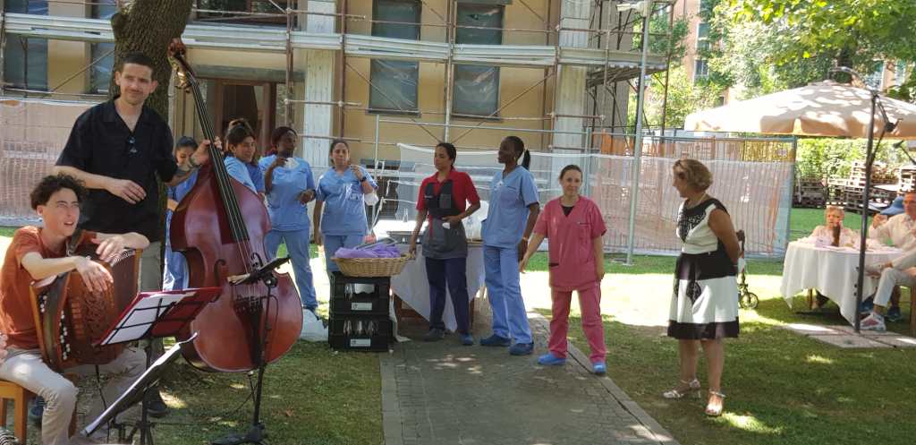Una gentile signora di 103 anni nel salutare dopo lo spettacolo, mentre le carrozzine sfilavano, pilotate dallo staff sanitario verso le tre sale da pranzo, mi ha stretto forte forte la mano dicendo con voce dall’articolazione incerta: «Tornerete, vero? Vi aspettiamo». Un invito che non si può rifiutare.