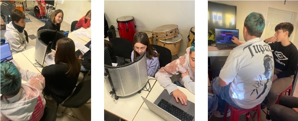 Ma entriamo nel merito e cerchiamo di capire come questi ragazzi e queste ragazze hanno lavorato per realizzare il loro podcast. Innanzitutto, è bene tenere presente che per un progetto di didattica innovativa come quello presentato dalla classe 3 B è necessario avere un setting adeguato. E così l’aula scolastica, la sala musicale e quella multimediale si sono trasformate in luoghi vivi in cui i ragazzi e le ragazze hanno potuto dare libero sfogo alla loro creatività. Grazie a un lavoro di squadra coordinato dall’occhio vigile, attento ma discreto della professoressa Rocchetti, utilizzando in modo adeguato il tempo e gli spazi a disposizione, è stato realizzato un podcast che non è solo un prodotto finale da presentare a un concorso, ma si è rivelato anche un tassello di un percorso di apprendimento e crescita.