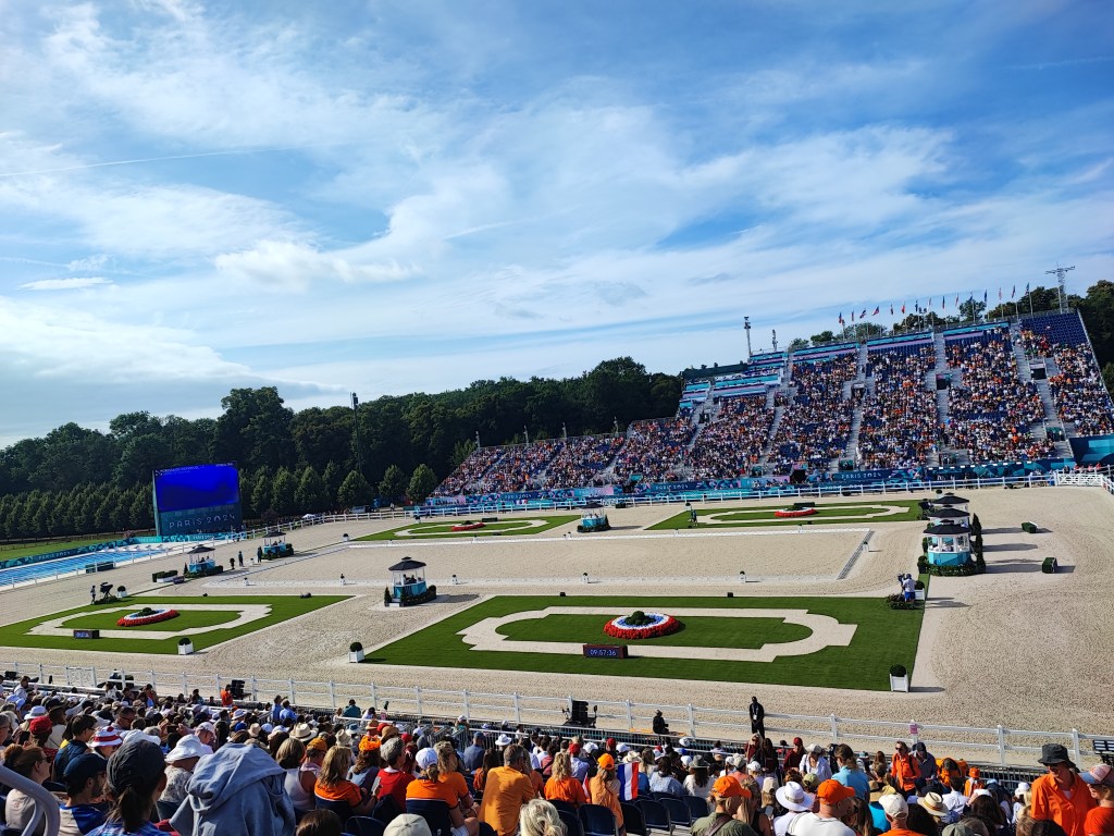 E proprio a Versailles domenica 4 agosto si è svolta la finale individuale di dressage con i migliori binomi (diciotto in totale) che si sono sfidati nella prova freestyle, che, per chi non lo sapesse, prevede una coreografia tecnica da eseguire insieme a una base musicale. L’arrivo alla reggia non è stato complesso, anzi, l’accesso allo stadio è stato celermente coordinato da tutto lo staff organizzativo e la meravigliosa cornice ha aumentato l’entusiasmo delle migliaia di persone presenti.