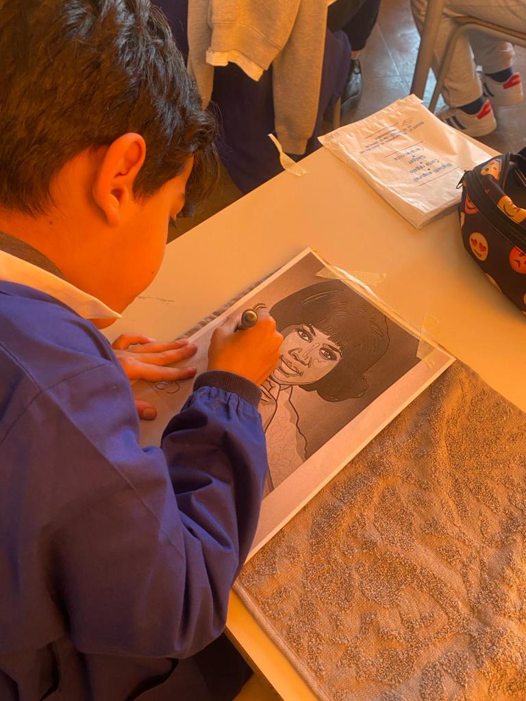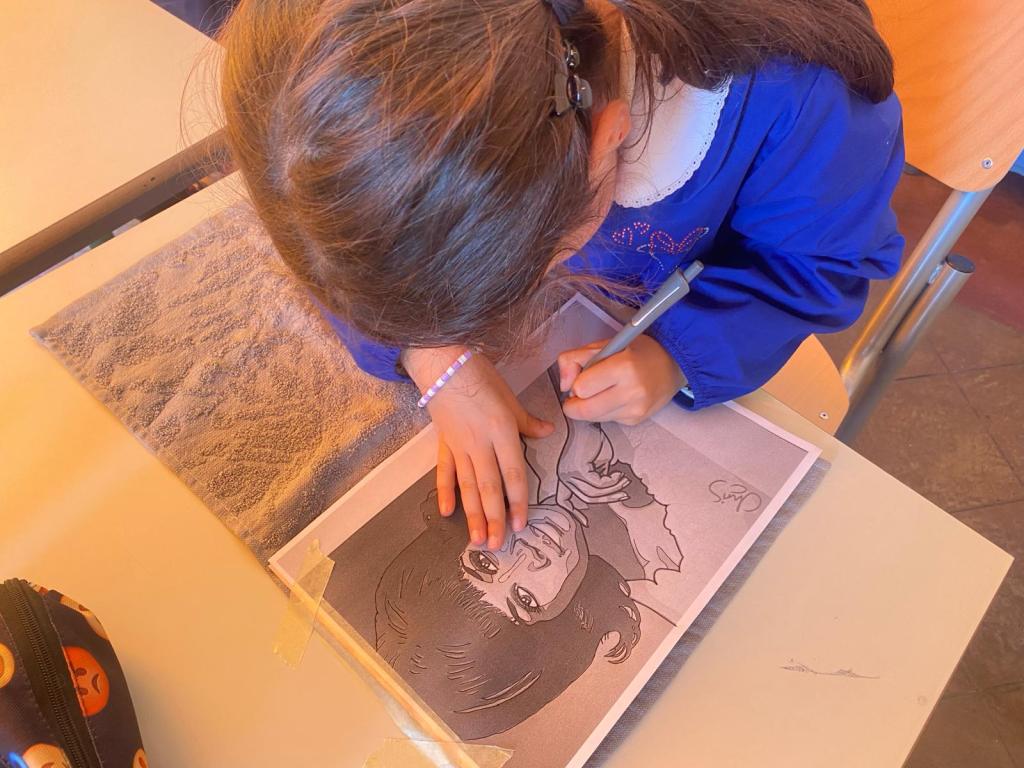 Mercedes Sosa, Aretha Franklin e Violeta Parra sono le artiste indagate rispettivamente dalle classi 1A, 3 e 4B e 4A dell’Istituto comprensivo “Santa Caterina”. Alla cantante e attivista argentina sono dedicati dei ritratti che la raffigurano.