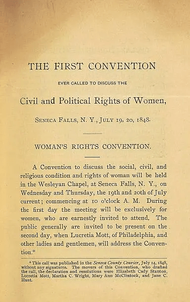 Così si chiudeva la Declaration of Sentiments alla Convenzione di Seneca Falls del 1848, evento fondativo del Movimento suffragista statunitense lanciato da Lucretia Mott, Marta C. Wright, Elizabeth Cady Stanton e Mary Ann Mc Clintock.