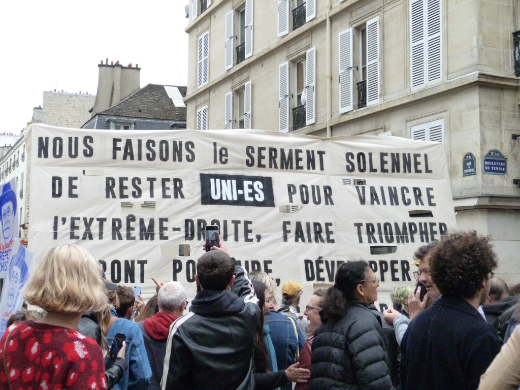 Il 7 settembre Parigi ha visto sfilare circa 160mila persone in difesa della democrazia e oltre 150 manifestazioni analoghe avevano luogo in tutta la Francia. Mentre la folla scandiva «Lucie Castets à Matignon, sinon Macron déstitution» (Matignon, è il palazzo sede del capo del governo), Jean-Luc Mélenchon ha preso la parola: «La Rivoluzione del 1789 ha impresso nella Storia un concetto molto chiaro: nessuno, neanche il monarca, è più sovrano del popolo».