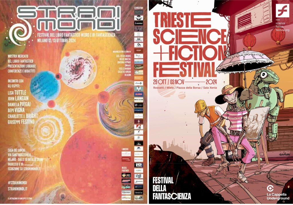 In copertina: Milano, Stranimondi, 12 ottobre 2024. Il tavolo delle Fantascientiste (femministe)n, da sinistra: Lisa Tuttle (ospite), Angelica De Palo, Romina Braggion, Laura Coci, Francesca Cavallero, Claudia Corso Marcucci, Nicoletta Vallorani, Giuliana Misserville, Angelica De Palo. Fermo immagine a conclusione della lettura del divertente drabble di Angelica De Palo (ripresa video di Roberto Del Piano, https://youtu.be/MIsUm3b2wkc?si=2iMU_-9sMZJcPvkK).