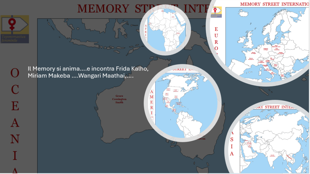 Tra questi, la costruzione del Memoy Street International ha rappresentato lo strumento privilegiato per attivare un percorso conoscitivo di figure femminili significative per il loro operato, smentendo la percezione che le donne, in quanto assenti dalla memoria storica collettiva, non abbiano realizzato niente di importante.
