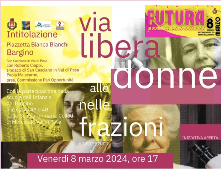 Il valore del percorso condiviso, concretizzato ufficialmente con l’intitolazione della Piazzetta Bianca Bianchi nella frazione del Bargino, l’8 marzo nella Giornata internazionale dei Diritti delle donne, a sancire il diritto della donna alla visibilità è ben riconoscibile nella motivazione al premio della Giuria che così si esprime: