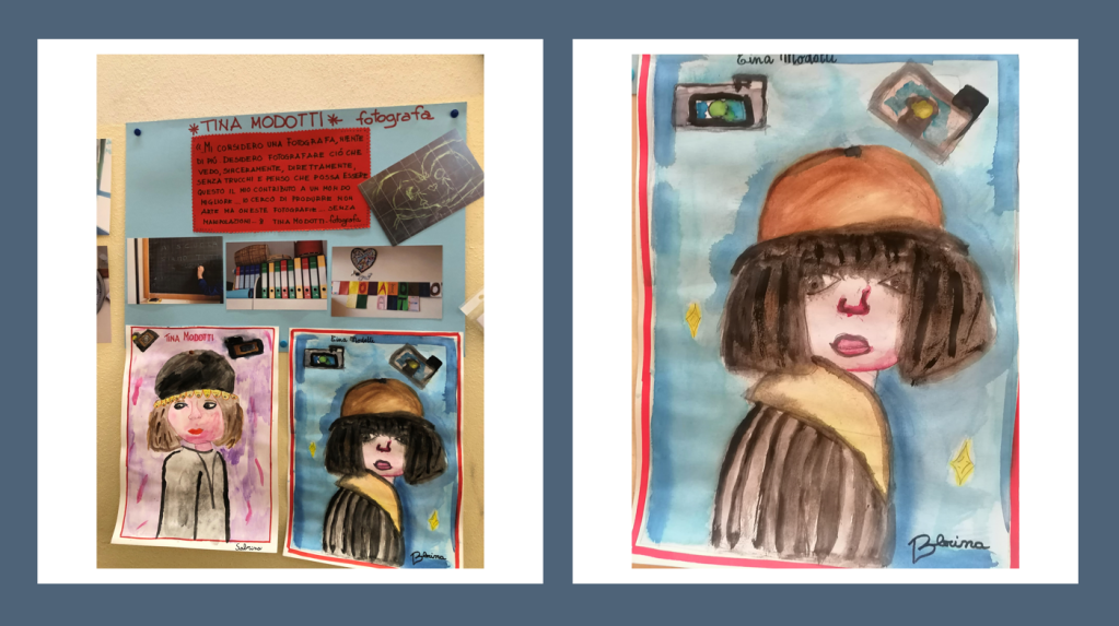 Il gioco condiviso con le classi di appartenenza, così come l’esposizione nell’atrio della scuola di tutti gli elaborati prodotti che ha reso partecipi docenti, discenti, genitori, mentre la proposta di intitolazione a Tina Modotti ha attivato l’Amministrazione Comunale, finalizza questo complesso itinerario, che si snoda attraverso attività, analisi, riflessioni, in un momento formativo destinato a più soggetti».