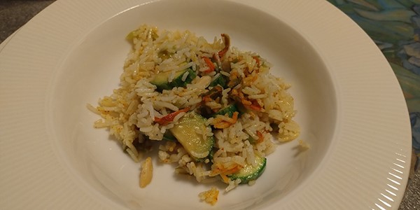 Unite le verdure al riso cotto, mescolate bene e profumate con il curry e la curcuma, secondo le vostre preferenze.