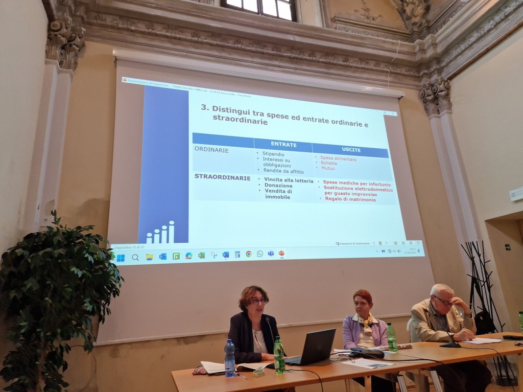 In Biblioteca Laudense, Sala Granata, a Lodi, si sono tenuti, a cavallo fra settembre-ottobre 2024, due incontri di formazione dal titolo “Conoscere per proteggersi: donne e cultura finanziaria”. Il corso, organizzato dal Collegio Notarile di Milano e Banca d’Italia, è itinerante in diverse città e ha l’obiettivo di presentare gli elementi basilari di quella cultura giuridico-economica che spesso manca alle donne, anche a quelle che hanno studiato ma sono state indirizzate prevalentemente a lavori nella scuola o nei servizi, in modo tale che potessero riservare tempo anche alla famiglia.