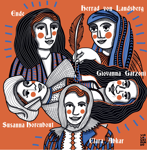 Si va dalle miniatrici medievali Ende ed Herrad Von Landsberg a Susanna Horenbout, che lavorò alla corte dei Tudor, all’italiana Giovanna Garzoni, che ha miniato il Libro de’ caratteri cancellereschi corsivi, a Clara Abkar, attiva nel ‘900, prima miniaturista iraniana.