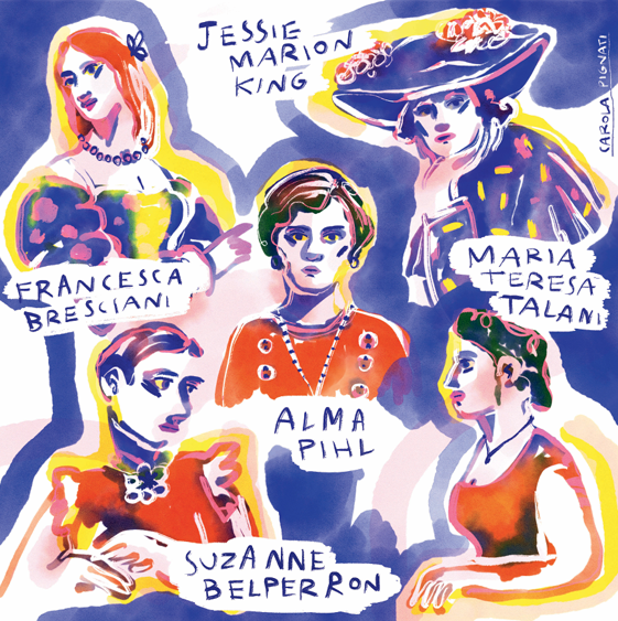 Artiste delle pietre e dei metalli ad aprile: Francesca Bresciani ha lavorato nel cantiere di S. Pietro, Maria Teresa Talani fu al servizio dei Borboni, dei Bonaparte e di altri prestigiosi committenti, Jessie Marion King è stata artista a tutto tondo, illustratrice di libri per l’infanzia, creatrice di costumi, tessuti, gioielli, murales e ceramiche, Alma Phil fu l’unica donna a lavorare alle uova di Fabergé, e Suzanne Belperron ha realizzato i gioielli che amavano sfoggiare le signore dell’epoca.