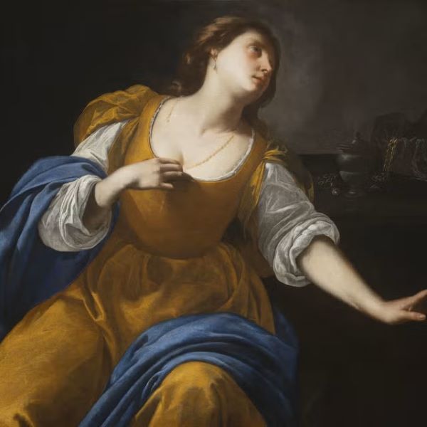 Guardando gli eventi e le mostre in corso in questo periodo, tra Andy Warhol e l’esperienza immersiva nelle opere di Banksy, mi ha attirato il ritorno a Napoli di un’opera di Artemisia Gentileschi, la Maddalena penitente, che fu dipinta in questa città tra il 1630 e il 1635, abbastanza lontano quindi dagli eventi drammatici che hanno caratterizzato la vita della pittrice. Ora, dopo 400 anni, ritorna a Napoli, ed è esposta in una delle sale del Chiostro Maiolicato all’interno del Complesso Monumentale di Santa Chiara.