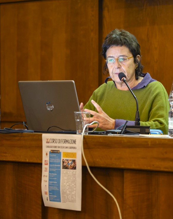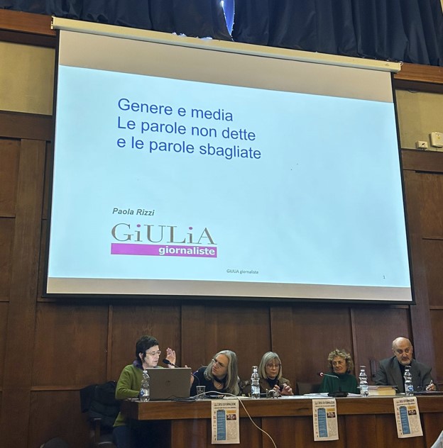 Successivamente, a intervenire nel convegno è Paola Rizzi, vicepresidente di GiUliA (Giornaliste Unite Libere Autonome), associazione nata nel 2011 che si impegna a promuovere un racconto diverso delle donne sui media e si batte perché le giornaliste abbiano pari opportunità nei luoghi di lavoro, senza “tetti di cristallo” e discriminazioni. Il linguaggio utilizzato nei giornali è infatti testimone di come le donne siano trascurate, a partire dai numerosi stereotipi e pregiudizi che vengono impiegati, insieme a varie espressioni sessiste che molte volte pongono l’attenzione sul corpo femminile. Inoltre, nella maggior parte delle narrazioni sui media le donne sono rappresentate come vittime o sopravvissute in percentuali ben maggiori rispetto agli uomini.