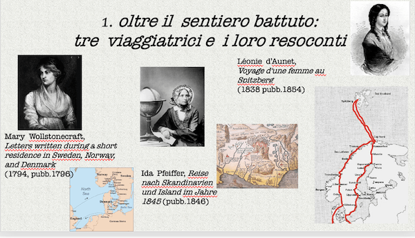 È opportuno riscoprire le viaggiatrici italiane per ribadire come, nel nostro paese, le donne abbiano a lungo occupato una posizione subordinata, il loro contributo allo sviluppo sociale sia stato in ogni campo trascurato, la loro voce sempre silenziata. Per tutti questi motivi le italiane arrivano nel Grande Nord fra il 1898 e il 1935, più tardi rispetto a donne di altri paesi. I loro resoconti hanno un certo rilievo presso il pubblico non specialistico: contribuiscono a modificare nell’immaginario italiano la percezione di quest’area, fino ad allora considerata terra di frontiera, accessibile unicamente a esploratori e scienziati.