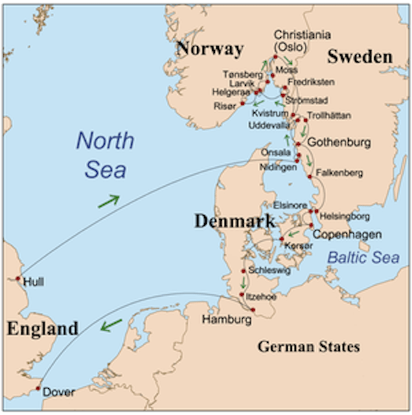 La prima, Mary Wollstonecraft, è già famosa quando, nel 1794, intraprende un viaggio verso la penisola scandinava. Due anni prima, a Parigi per partecipare alla Rivoluzione francese, ha incontrato l’avventuriero americano Gilbert Imlay, di cui si è innamorata. È proprio lui a chiederle di recarsi lungo le coste della Scandinavia: ufficialmente solo una turista, Mary viaggia con la loro figlia, Fanny di due anni e l’incarico segreto di ritrovare un fantomatico vascello, carico degli averi che avrebbero salvato l’uomo dai debiti. Al ritorno, dopo il definitivo abbandono di Imlay, Mary pubblica il suo resoconto, Lettere scritte durante una breve residenza in Svezia, Norvegia e Danimarca (1796): un grande successo, citato nei saggi di geografia contemporanei, ma dimenticato già in età vittoriana. Ultima pubblicazione di Mary prima della sua morte, le Lettere, che evidenziano l’intimità fra mittente e destinatario, coprono una vasta gamma di argomenti, perché l’autrice è una filosofa e riporta tutti gli aspetti di quella realtà sconosciuta, dai ricordi personali agli incontri con le popolazioni locali, dalle osservazioni sulla natura alle difficoltà che deve affrontare in quanto donna sola. È solo nel 1980 che uno studioso svedese, Per Nyström, ha scoperto la vera ragione di questo viaggio: a riprova dello scarso interesse per i viaggi femminili.