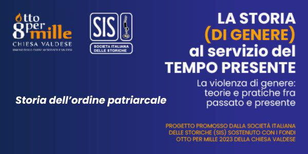 Il quarto incontro di La violenza di genere: teorie e pratiche fra passato e presente, il nuovo corso della Società Italiana delle Storiche, si intitola Storia dell’ordine patriarcale ed è presentato da Simona Feci. Il corso, gratuito, è collocato all’interno del progetto La storia (di genere) al servizio del tempo presente, finanziato dai fondi Otto per mille 2023 della Chiesa Valdese.
