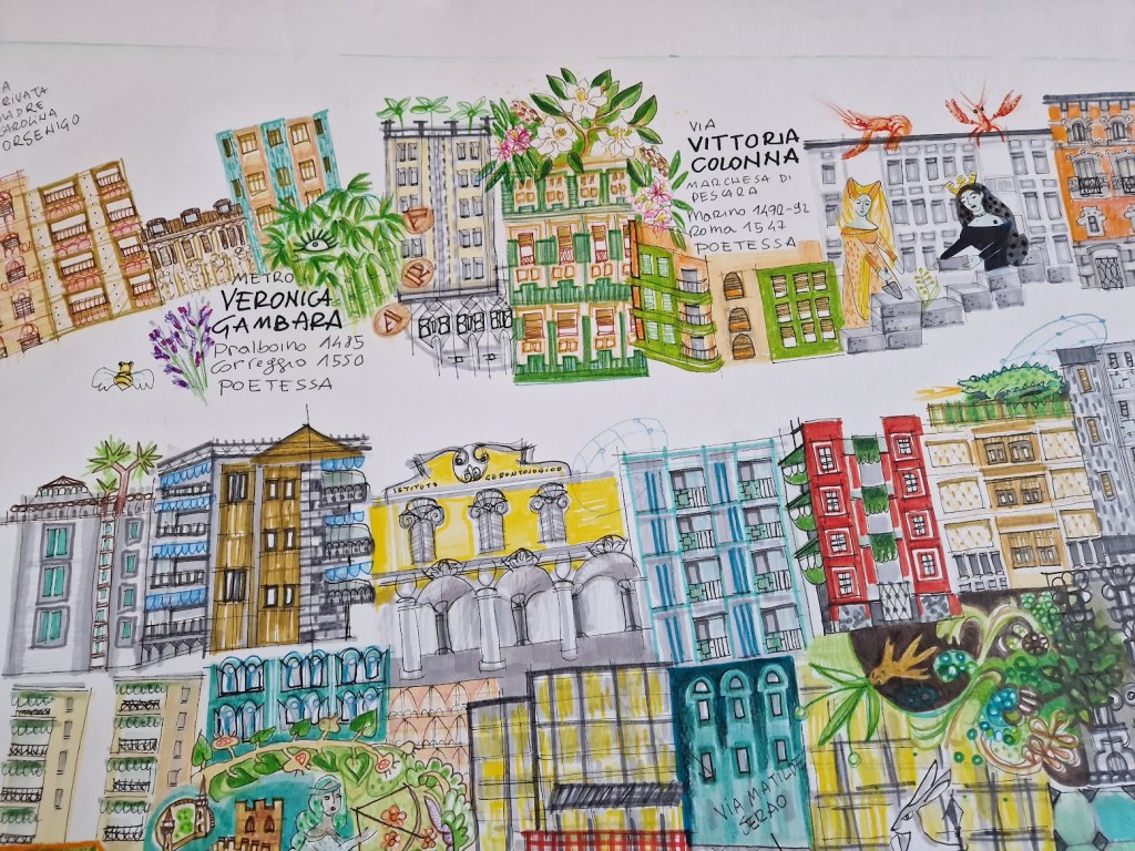 Ci ha accolte Rebecca Agnes, che ci ha illustrato la prosecuzione del suo lavoro artistico, La città di chi?, progetto con cui ha intrecciato un rapporto con Toponomastica femminile. Rebecca ha iniziato a narrare la città di Milano e le impronte lasciate dalle donne nelle sue strade, realizzando mappe/camminate alla ricerca dei toponimi femminili, nel centro e nel nord-ovest della città.