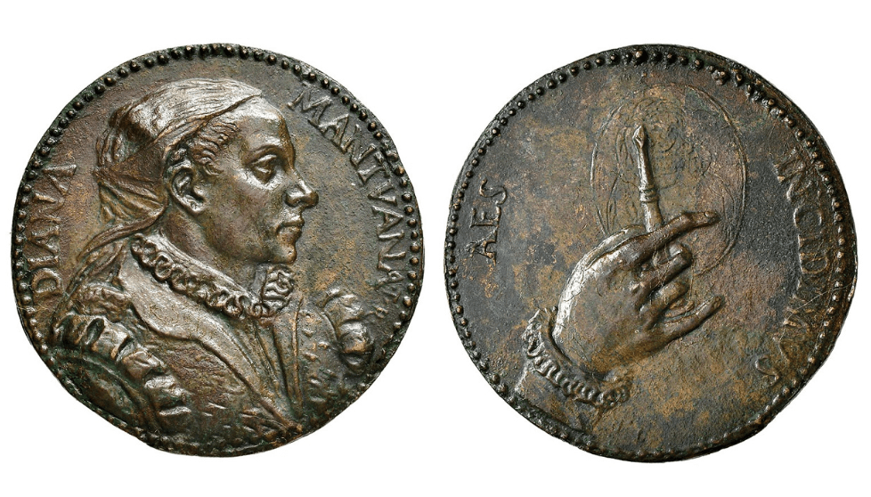 Come vedremo, le restrizioni imposte in quanto donna le offrirono meno possibilità di emergere rispetto a quelle di un incisore del tempo, come il fratello Adamo, ad esempio. Andiamo però con ordine e cominciamo a raccontare la storia di quest’artista partendo dal suo nome. Diana Mantuana, nome utilizzato per firmare le opere, è conosciuta anche con gli appellativi Scultori e Ghisi. Il primo proviene dal padre, conosciuto come Giovan Battista Scultori per la professione esercitata; il secondo, invece, cioè Ghisi, è un errore in quanto in passato si era ritenuto che Diana avesse legami di parentela con tale Giorgio Ghisi, un incisore mantovano che era solito farsi chiamare Mantovano. Figlia d’arte di Giovan Battista Scultori, originario di Verona, e di Osanna da Acquanegra, nata nel 1547, Diana aveva assaporato il gusto dell’arte nella bottega del padre, a Mantova, dove era diventata sua apprendista. Secondo alcune ricostruzioni, l’uomo si era trasferito in quella città, diventando allievo di Giulio Romano e collaborando con lui nel cantiere di Palazzo Te per il quale aveva realizzato degli stucchi. Lo stesso Vasari definì «nuova e stravagante maniera» quella inaugurata da Giulio Romano a Mantova, contribuendo a delineare i caratteri di un nuovo modo di fare arte che, nei secoli XVII e XVIII, avrebbe assunto un’accezione negativa con il nome di Manierismo. Questa corrente artistica era connotata in ambito architettonico da un linguaggio più appariscente e articolato tendente al riutilizzo, in modo non ortodosso, degli elementi della tradizione classica mediante l’arricchimento degli elementi decorativi; in ambito scultoreo i corpi divennero più longilinei e si volle conferire loro maggiore dinamicità mediante il movimento; in ambito pittorico scomparvero la prospettiva centrale e l’ambientazione architettonica classicheggiante a favore di composizioni più libere e collocate in ambienti naturalistici; vennero, inoltre, introdotte nuove tonalità di colore come il rosa e il viola e la luce fu utilizzata sia per conferire tridimensionalità all’opera, sia per accentuarne i caratteri drammatici. Per quanto riguarda i soggetti, si riproposero quelli rinascimentali: scene sacre, scene mitologiche e ritratti in cui però al mezzobusto e alla posa di lato vennero preferite porzioni più ampie di corpo circondato di solito da sfondi cupi. Diana Mantuana viene considerata un’artista manierista proprio perché si formò in uno dei centri in cui tale corrente artistica ebbe successo, cioè la Mantova dei Gonzaga; inoltre, si cimentò in una tecnica che si era diffusa in Italia proprio tra Cinquecento e Seicento: l’incisione calcografica. Vasari stesso scrive che i figli di Giovan Battista Scultori divennero abili nella tecnica dell’incisione su lastre di rame utilizzando il bulino. Luogo e data di nascita dell’incisione calcografica italiana sono difficili da stabilire; è sempre Vasari a fornire informazioni fondamentali in merito, narrando che, intorno al 1450, gli orafi fiorentini realizzarono placche d’argento incise per la decorazione di vari oggetti. Pertanto, possiamo dire che la tecnica, di cui Diana Mantuana sarebbe diventata un’abile esecutrice, nacque nelle botteghe orafe di Firenze, venne successivamente trasferita in ambito artistico, indipendentemente dalla diffusione in Germania, dove emerge il lavoro di Dürer. A essere impiegato c’era sempre il bulino, strumento molto difficile da maneggiare per via dell’impugnatura necessaria tra indice e pollice, e che richiedeva pratica e precisione continue per poter sviluppare un segno pulito e funzionale all’immagine che si voleva creare. Le incisioni di Diana Mantuana sono perlopiù e realizzate proprio con il bulino e la medaglia di rame, qui sotto riportata e incisa con il suo volto, presenta sul retro l’immagine di questo strumento.